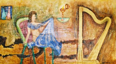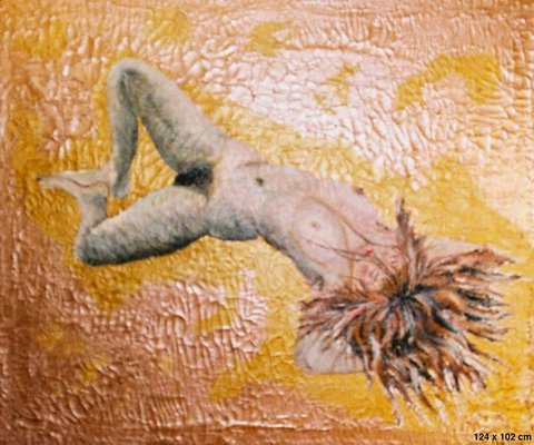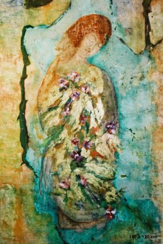 ,,Nümf´´ 124cm x 106cm , segatehnika, raamitud |  ,, Kevad´´ 91cm x 61cm,õli & akrüülik lõuendil |  ,,Suvi´´ 122cm x 102cm , õli & akrüülik lõunedil |