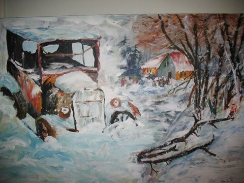 ,,Mäed´´70cm x 50cm,õli & akrüülik lõuendil |  ,,Mahajäetud Auto´´91cm x 61cm , õli &akrüülik lõuendil ,raamitud , müüdud |  ,,Talv´´ 91cm x 61cm , õli & akrüülik lõuendil |