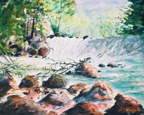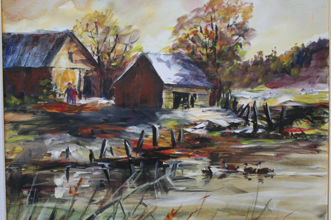 ,,Õhtu Eel´´ 236cm x 240cm, segatehnika viineril |  ,,Kosk´´ 74cm x 61cm,õli & akrüül lõuendil |  ,,Vana Veski´´92cm x 76cm ,õli & akrüülik lõuendil |