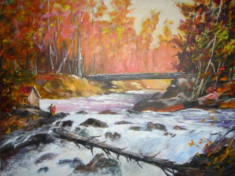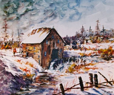 ,,Õhtu Eel´´ 236cm x 240cm, segatehnika viineril |  ,,Kosk´´ 74cm x 61cm,õli & akrüül lõuendil |  ,,Vana Veski´´92cm x 76cm ,õli & akrüülik lõuendil |