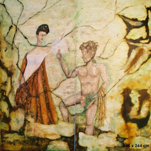 ,,Ootel´´ 242cm x 242cm, segatehnika |  kunstnik eha luik |  ,,Rahulik Lõvi´´ 200cm x 120cm, segatehnika vineeril |